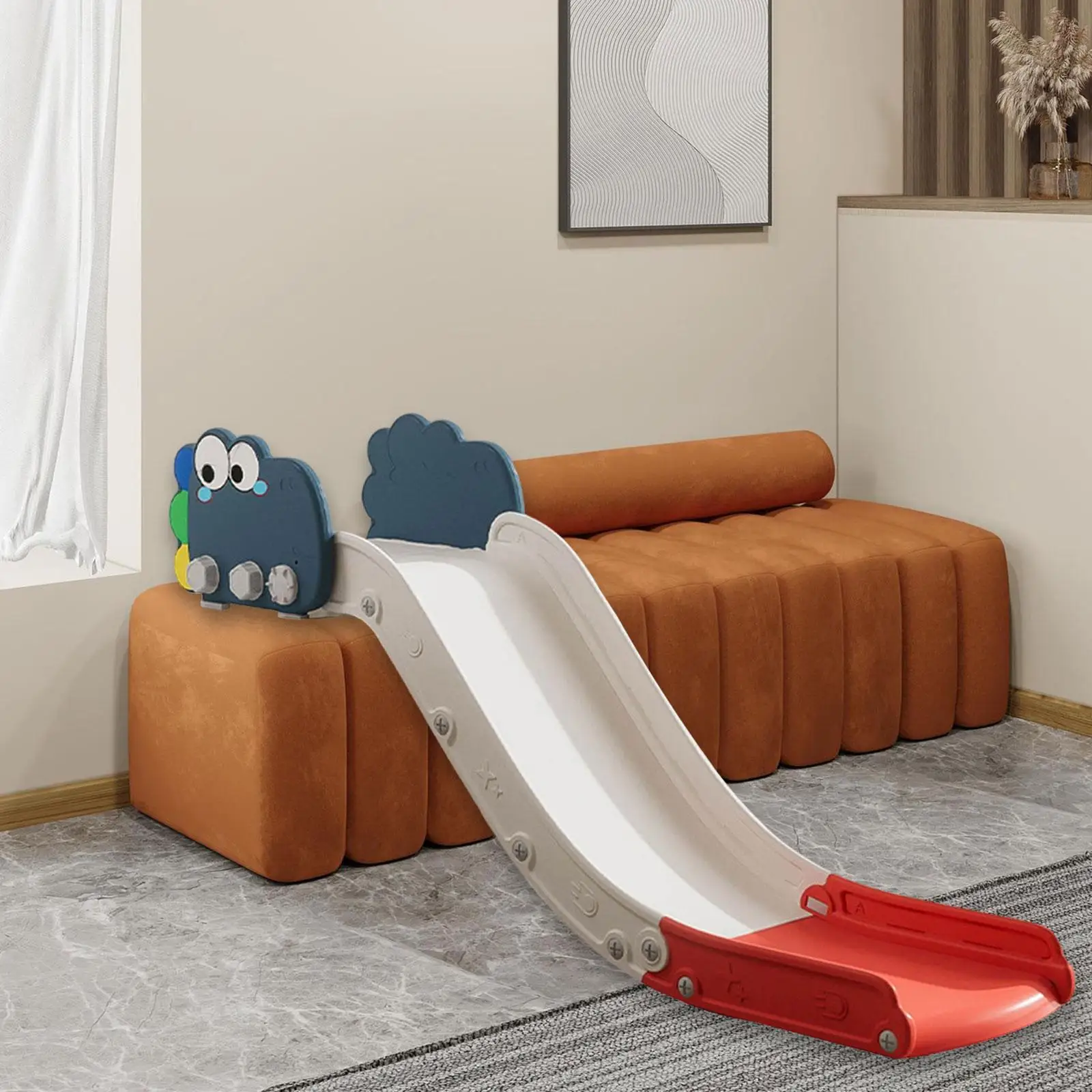 【Design estendido】: O slide infantil tem 155 cm de comprimento, proporcionando uma distância de deslizamento mais longa e mais diversão para o seu filho.O design do sofá de cabeceira permite que seja colocado ao lado da cama ou do sofá para facilitar o acesso.A altura recomendada está entre 40-55 cm.