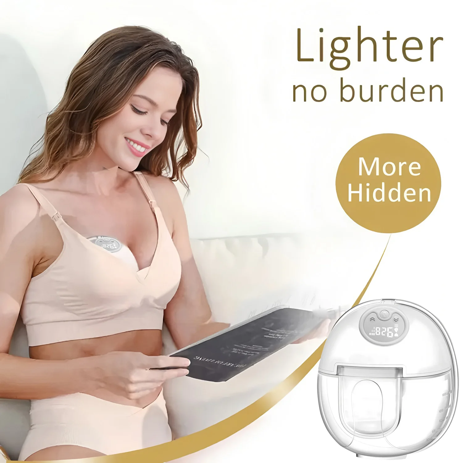 Bomba elétrica portátil para extração suave e eficiente do leite materno. Design ergonômico, peças em silicone e plástico livre de BPA — ideal para uso diário em casa ou fora.
